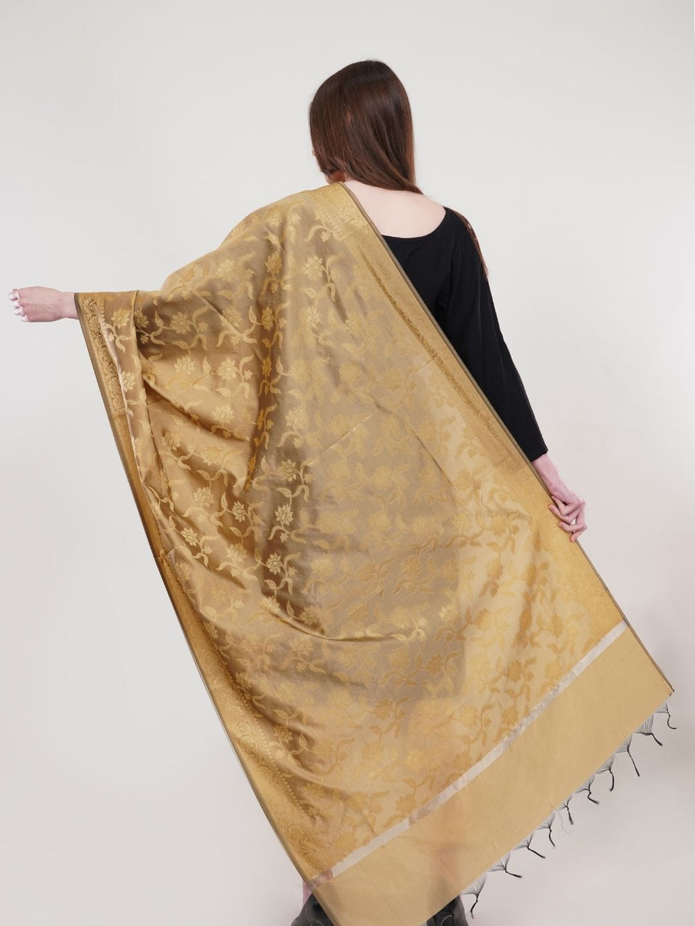 - Description: Our Beige banarasi silk Dupatta Is highlighted with zari work and is perfect to make you ethnic look complete.