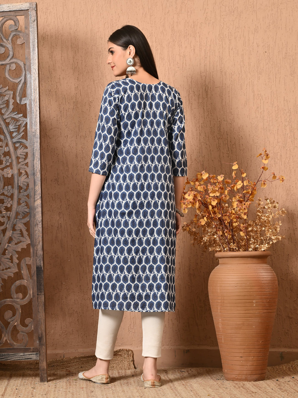 - Description: Our stylish blue cotton kurta features a flattering straight silhouette for effortless daily wear. Crafted from soft, lightweight cotton and designed for lasting comfort, this classic kurta is the perfect choice for any casual or formal occasions.