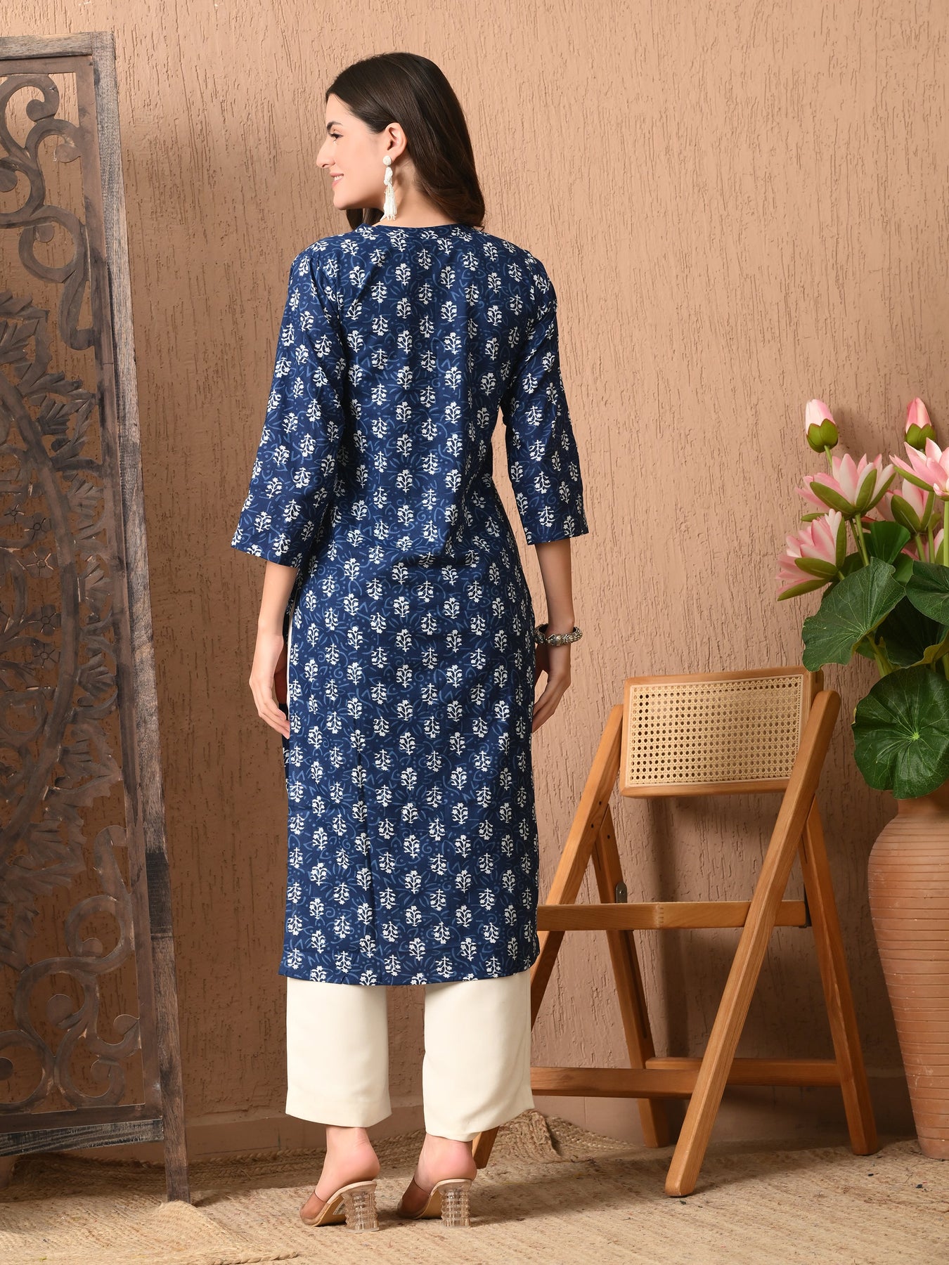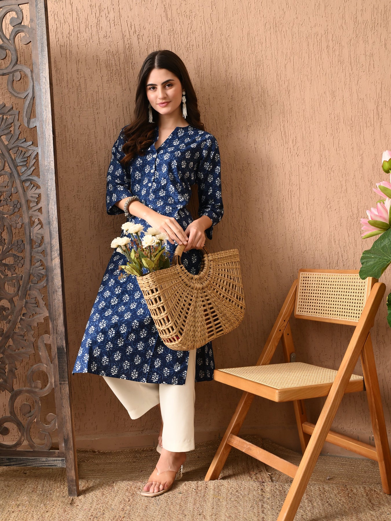 - Description: Our claasic indigo blue cotton kurta features a flattering straight silhouette for effortless daily wear. Crafted from soft, lightweight cotton and designed for lasting comfort, this kurta is the perfect choice for any casual or formal occasions.