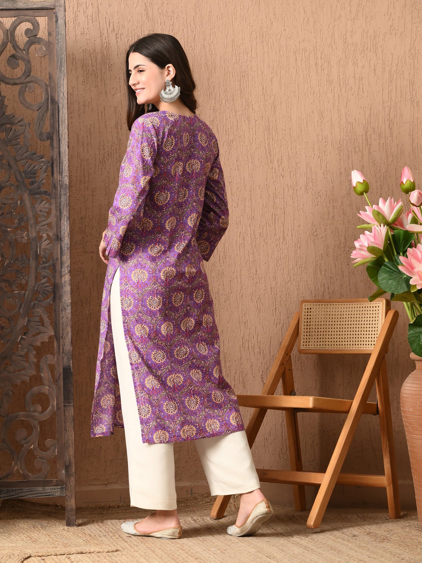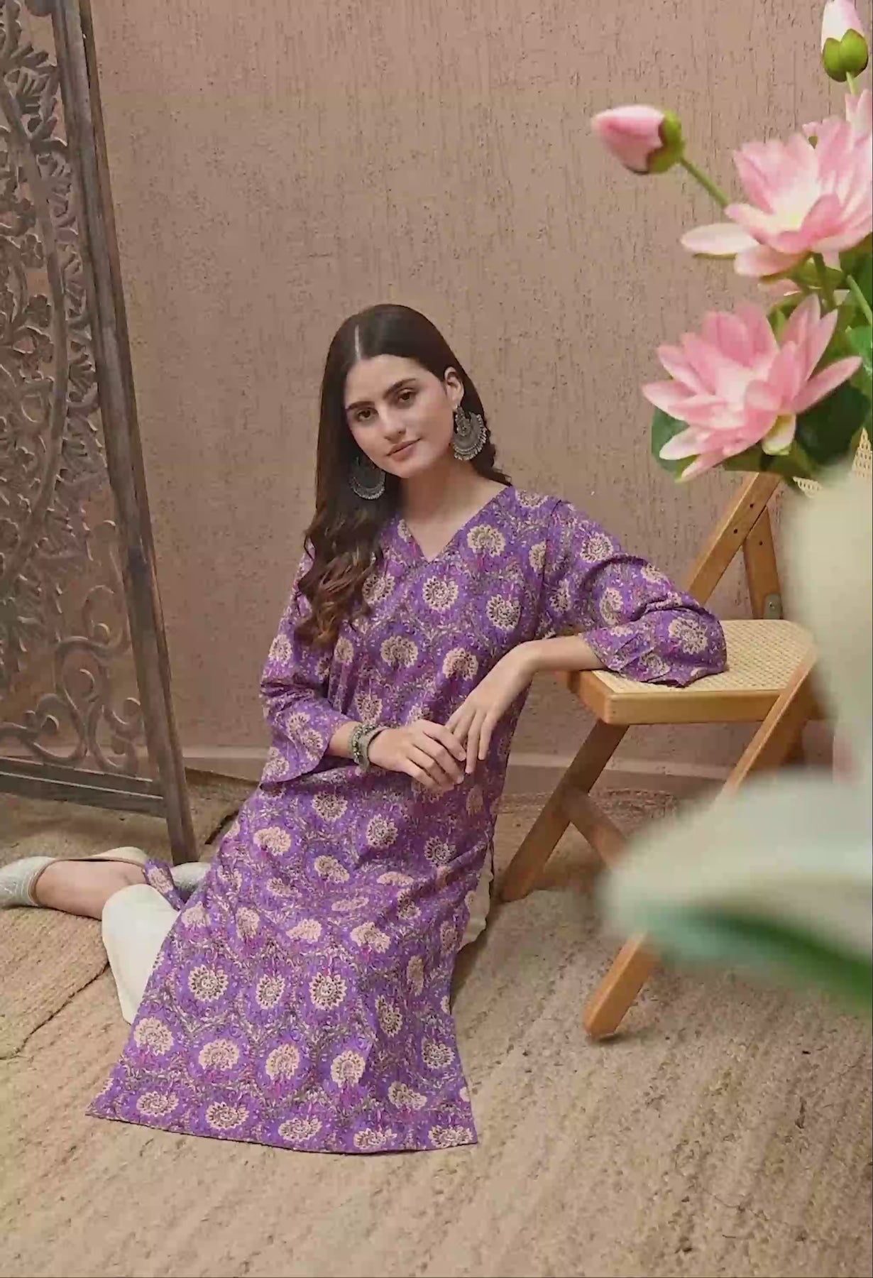 • Description: Our gorgeous purple printed kurta features a straight silhouette for stylish everyday wear. Crafted from soft, lightweight cotton and designed for lasting comfort, this classic kurta is the perfect choice for any casual or formal occasions.
