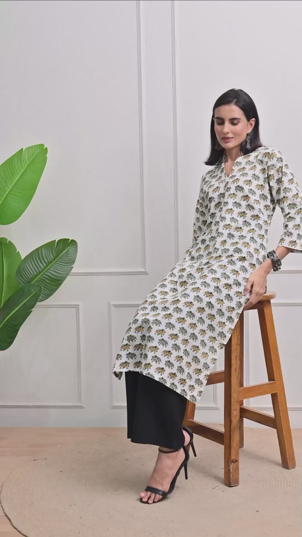 • Description: This classic white hand block print kurta feautres a beautiful floral print, matching lace work and is handcrafted with love in a flattering straight fit, and is a timeless piece of art work from Rajasthan. You can pair it with comfortable palazzos, pants or you favourite denims and create desired look for a perfect casual occasion.