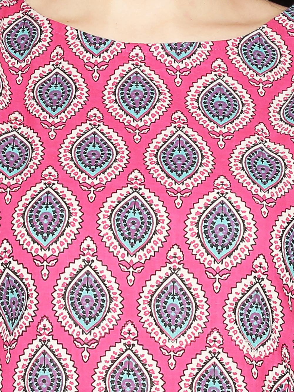 Pink Front Slit Cotton kurta