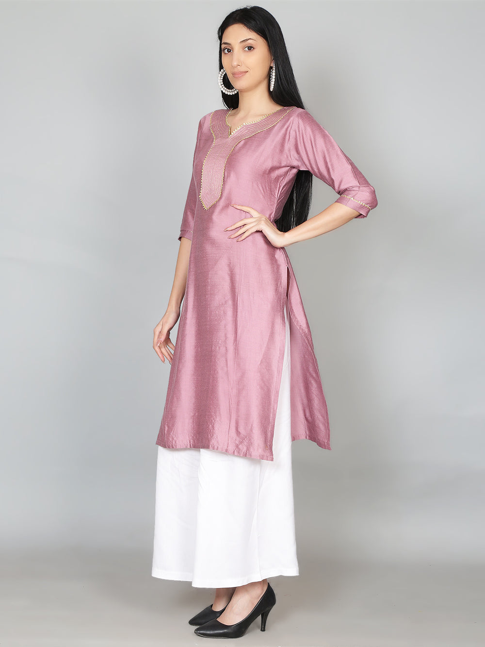 - Description: Our light pink cotton silk kurta is soft and pretty. Beautiful gota work makes it even more stylish and classy, making it a perfect choice for any special occasion.